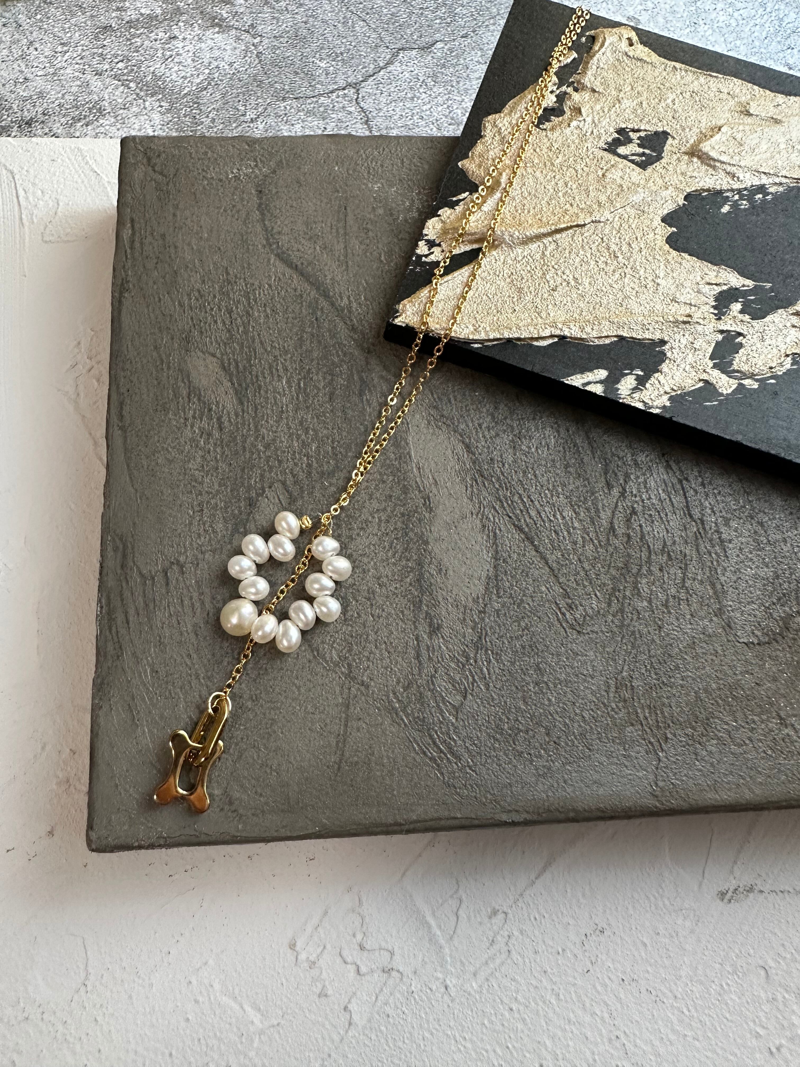 淡水パールやチャームをお好みの位置に、